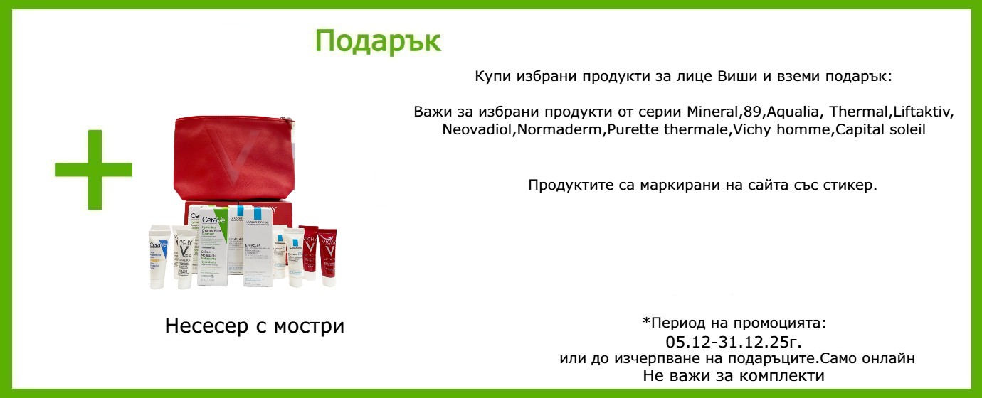 Не се изискват специфични предпазни мерки за използването на този продукт при нормални или разумно предвидими условия на употреба. *Максималният брой продукти, които могат да бъдат закупени в една поръчка е 6 бр Да се съхранява на сухо и прохладно място, далеч от деца и пряка слънчева светлина. За външна употреба, избягвайте контакт с очите. Съхранявайте при температура под 25 градуса. Да не се използва след изтичане на крайния срок. ИНФОРМАЦИЯ ЗА ПРОИЗВОДИТЕЛЯ - Отговорно лице Vichy France CAI/CAF 03 Vichy France, TSA 75000 93584 ST OUEN CEDEX FR. Данни за контакт: [email protected] // +359 2 4925 366 *Обаждането се таксува според тарифната политика на съответния оператор // www.vichy.bg