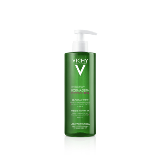 Vichy Normaderm Cleansing Gel for Oily Skin от 400 мл представлява дълбоко почистващи гел от серията Нормадерм на Виши, който почиства в дълбочина проблемната и мазна кожа с несъвършенства от всякакви замърсявания и грим, предотвратява излишния себум, без да изсушава кожата на лицето. Едновременно силно ефективен и ултра-нежен, измиващият почистващ гел е подходящ дори и за най-чувствителната кожа, склонна към поява на несъвършенства: пъпки, запушени пори, лъщене. Леката, свежа и пенлива гел текстура е приятна за нанасяне и лесна за отмиване.