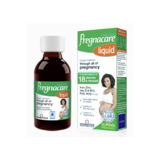 ВИТАБИОТИКС ПРЕГНАКЕЪР СИРОП 220МЛ - Pregnacare е най-известният бранд хранителни добавки за бременни във Великобритания и на него се доверяват за пълноценния си хранителен режим жени, които са бременни или се опитват да имат бебе. Pregnacare Сироп е научно разработена формула от 18 витамини и минерали , вкл. 400µg Фолиева киселина и 10mcg Витамин D. Формулата на продукта е създадена така че всички нива на неговите съставки да са безопасни за периода на бременността, със средни, а не прекалено високи стойности.