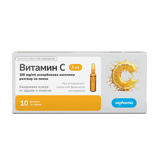 ВИТАМИН Ц АМП. ЗА ПИЕНЕ 100МГМЛ 5МЛ. Х 10 – СОФАРМА