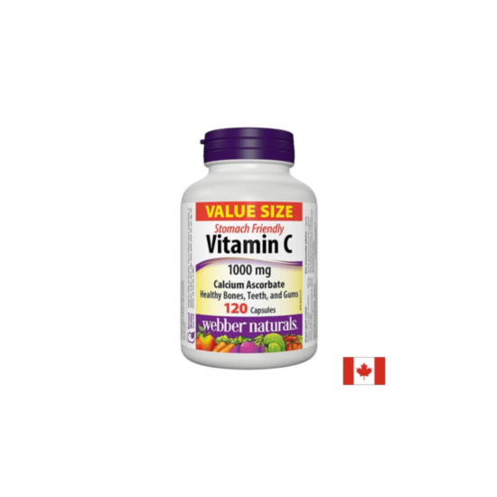 Витамин С калциев аскорбат от Webber Naturals, Канада, е висококачествен продукт, който ви гарантира удобен и щадящ начин да посрещнете ежедневните си нужди от това основно хранително вещество. Всяка капсула осигурява 1000 mg витамин С, буфериран с калций, което предотвратява дразненето на стомаха, осигурява антиоксидантна защита и допринася за нормалното състояние на костите, зъбите и имунната система. Некиселата калциева аскорбатна формула позволява на хората, изпитващи стомашно-чревни симптоми, като коремна болка, диария или киселини, с редовен прием на витамин С да поддържат добра имунна ситема.