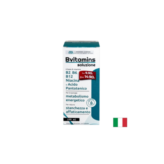 SanaVita B Vitamins Soluzione / Витамини В-Комплекс, 100 ml е хранителна добавка на Paladin Pharma, Италия. Продуктът подпомага нормалното състояние на нервната система и енергийния метаболизъм.