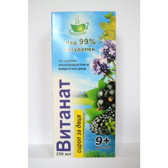 Съставки: Течен екстракт от: Касис, Къпина , Червено цвекло , Евкалипт , Мащерка , Жълт кантарион, Сладник/Женско биле, Гръцки орех в млечен стадии, захар, Натриев бензоат, лимонена киселина. Лекарствените растения съставляващи основата на сиропа ВИТАНАТ са богати на биологично активни вещества. Тези вещества подпомагат укрепването на имунната система, подпомагат хемопоезата (кръвотворенето), препятстват развитието на анемия, запълват нуждата на организма от витамини и минерали, благоприятстват кръвообращението, храносмилането и обмяната на веществата, стимулират защитните сили при простудни заболявания, играят ролята на природни антиоксиданти. Биологично активните вещества са благоприятни в допълнение на профилактиката на хипо-авитаминоза (недостиг на витамини), коригиране на дефицита на витамини и минерали при продължително заболяване и бременност, непълноценно хранене, емоционално и физическо усилие при деца в училищна възраст, изоставане в ръста и развитието или липса на растеж, като витаминна добавка в диетологията, за намаляване на нежеланите реакции и повишаване на ефикасността при антибиотична и други медикаментозни терапий.