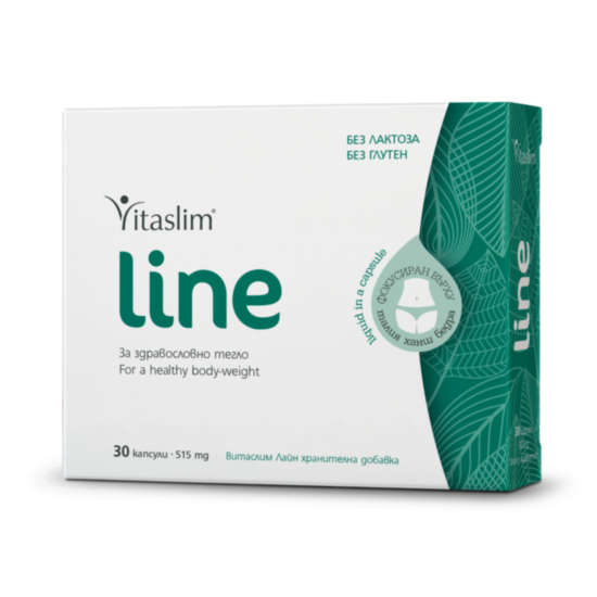 ДЕЙСТВИЕ: Vitaslim LINE съдържа конюгирана линолова киселина (CLA), която е с клинично доказан ефект за подкрепа регулирането на телесното тегло. Приемът съдейства за ускоряване метаболизма на мазнините и тяхната загуба, редуцира натрупаните мастни вещества в коремната област и подобрява формирането на чиста мускулна маса. Подпомага метаболитните функции, като съдейства за поддържане в здравословни граници на холестерола и кръвната захар, подкрепя дейността на имунната система. Комбинирането на CLA с тривалентен хром подпомага обменните функции и метаболизма на захарите и въглехидратите и обмяната на протеините. Висока ефективност за поддържане на теглото и обиколката на талията в здравословни граници проявява и полифенолът епигалокатехин-3-галат (EGCG), който се съдържа в зеления чай. EGCG подпомага функциите на мастните клетки, подкрепя дейността на черния дроб и участва в регулирането на продукцията на глюкоза, съдейства за повишаване на чувството за ситост. Комплексът от активни вещества е с доказана ефективност, а съдържанието на екстракт от гуарана подпомага енергийния баланс и отделянето на топлинната енергия от организма. Специалното вещество гуаранин спомага обменните процеси в организма. Съвременните клинични изследвания доказват и благотворното въздействие на гуараната в подобряването на умствената дейност, намаляването на умората и поддържането на жизнеността и младостта.