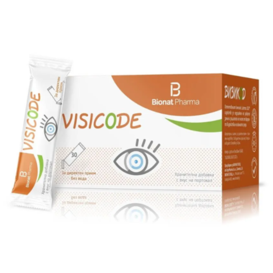 Visicode Oro е хранителна добавка под форма на ородисперсни сашета за директен прием без необходимост от вода. С вкус портокал. Основната активна съставка е специалният комплекс Lutemax®2020 - балансирана комбинация от лутеин и повишени нива на зеаксантин. Това са т.нар макуларни каротеноиди, които се депозират в макулата – малка зона от ретината на окото, отговорна за зрителната острота и доброто зрение в детайли. Макулата е едновременно най-значима за зрителната ефективност, но и най-податлива на увреждане вследствие на фотооксидативния стрес. Визикод Очи допринася за поддържане на нормалното зрение и зрителна острота. Съдейства за защита на клетките от оксидативен стрес.