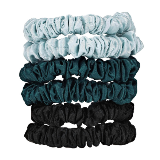 W7 КОПРИНЕНИ ЛАСТИЦИ СКРЪНЧИ МАЛКИ Х 6  е  пакет от 6 супер меки копринени ластика за коса са направени от 100% черничева коприна и са проектирани да причиняват по-малко триене и напрежение от обикновените ластици за коса.