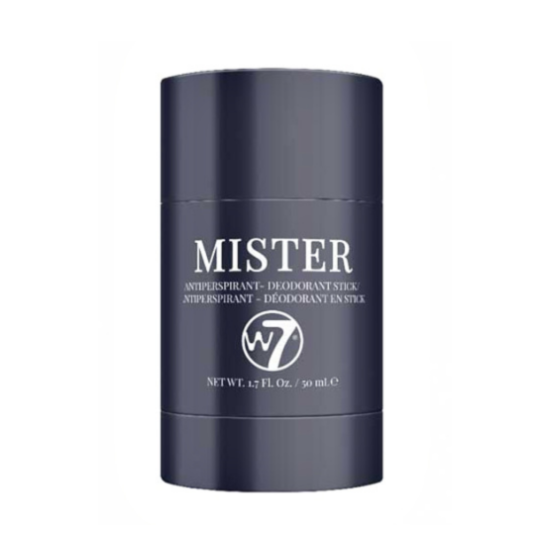 W7 МЕН МИСТЪР ДЕЗОДОРАНТ СТИК ПРОТИВ ИЗПОТЯВАНЕ 50МЛ   е дезодорант стик против изпотяване, който се бори с лошия дъх, като третира бактериите и микроорганизмите, които го причиняват. Освен това действа като антиперспирант, като намалява количеството произведена пот, без обаче да потиска цялостното й изтичане.