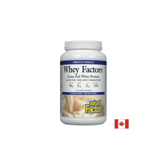 Whey Factors® Grass Fed Whey Protein на Natural Factors е високоефективен продукт с приятен ванилов вкус спомагащ за изграждането на мускулатурата.