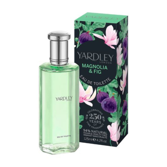 ЯРДЛИ ТОАЛЕТНА ВОДА МАГНОЛИЯ И СМОКИНЯ 125МЛ е свеж, плодово-зелено цветен аромат с върхови нотки от Бергамот и сладка Смокиня с Касис. Следвани от луксозна сърцевина от Магнолия, Жасмин и Ветивер и база от дърво Гваякум и Пачули. 94% натурални съставки. Растителна спиртна основа. Не е тествано върху животни. Подходящ за вегани. Върхови нотки – Бергамот, Смокиня, Касис Сърцевина – Магнолия, Жасмин, Ветивер Базови нотки – Гваяково дърво, Пачули Аромат – плодово-зелено цветен.