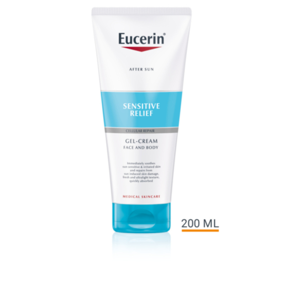 Eucerin Крем-гел за след слънце с CELLULAR REPAIR технология бързо успокоява раздразнената от слънцето кожа, като съдържа Licochalcone A, който предпазва от свободните радикали, и глициретинова киселина, която поддържа собствените ДНК възстановителни механизми на кожата, за да я предпазва от дългосрочните последствия от уврежданията на кожата, причинени от слънцето.