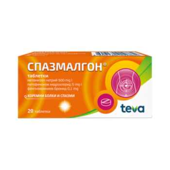 TEVA PHARMACEUTICALS *СПАЗМАЛГОН ТАБЛ Х 20 ДПромо цена 7,38 лв. / 3,77 € Редовна цена 8,39 лв. / 4,29 €