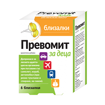 - Превомит – близалки за деца. Елиминират дискомфорта при малчуганите, на които им прилошава по време на път.