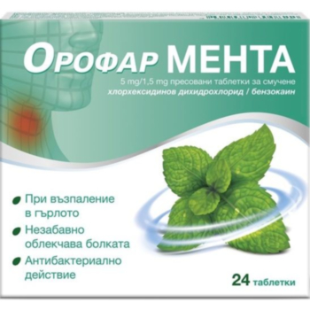 STADA *ОРОФАР МЕНТА ТАБЛ. ЗА СМУЧЕНЕ Х 24Промо цена 11,34 лв. / 5,80 € Редовна цена 12,89 лв. / 6,59 €